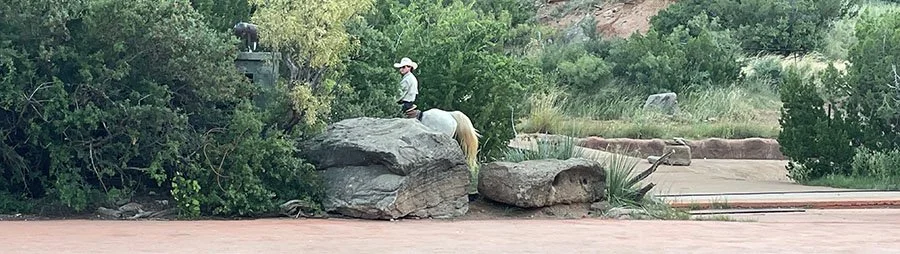 Rider starts the ascent to start TEXAS: The Musical at Palo Duro Canyon State Park