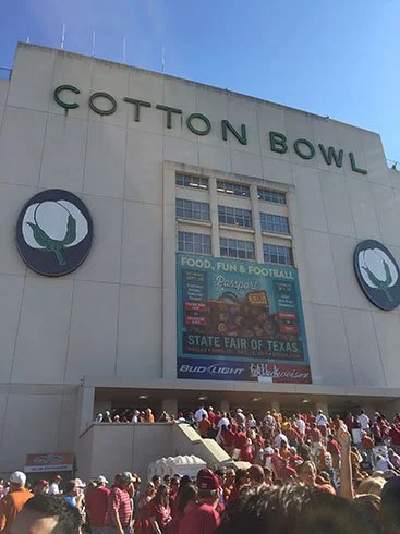 Each year in October, the Texas State Fair in Dallas provides a neutral location for the Red River Showdown, where the Horns and Sooners gather to battle it out at the Cotton Bowl, located on the fairgrounds.