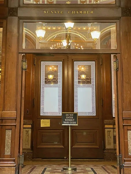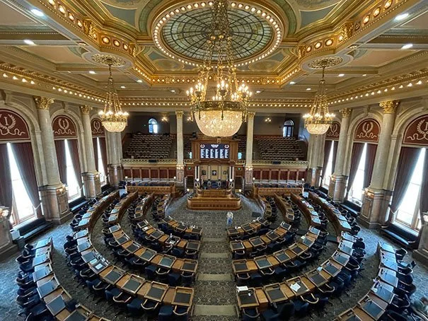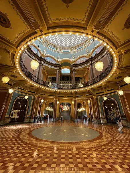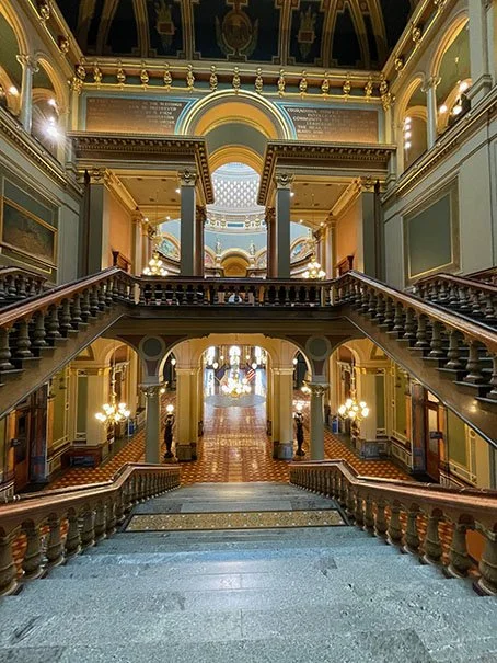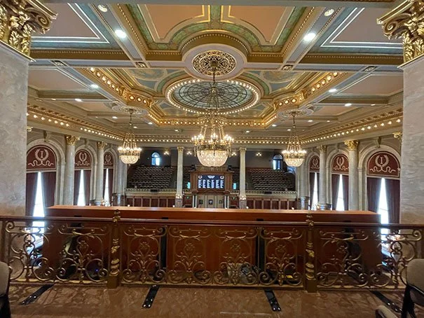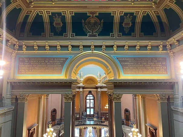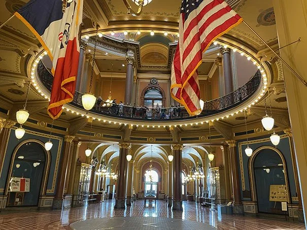 Everything about the interior of the Iowa State Capitol is stunning by any state capitol standard. Both chambers of the Iowa Legislature are gorgeous and ornate with rich detail. The Iowa Governor’s office is also in the capitol. The Iowa Supreme Court has a chamber here, but most of their work is done in the Iowa Supreme Court building.