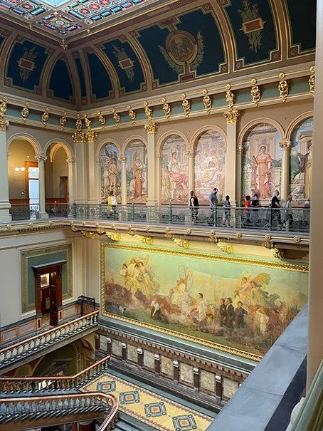 Learn more about planning your visit to the Iowa State Capitol. Before you go, I highly recommend downloading the Iowa State Capitol Visitor Guide (PDF), which is a detailed resource about the interior design and art on display. This publication is the best I have seen for a state capitol building and provides: