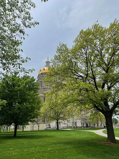 The Iowa State Capitol is located in downtown Des Moines, IA near East Village—a fantastic part of the city where I ended up staying. This capitol building is magnificent and the grounds on Capitol Hill are lovely. Des Moines is great, too!