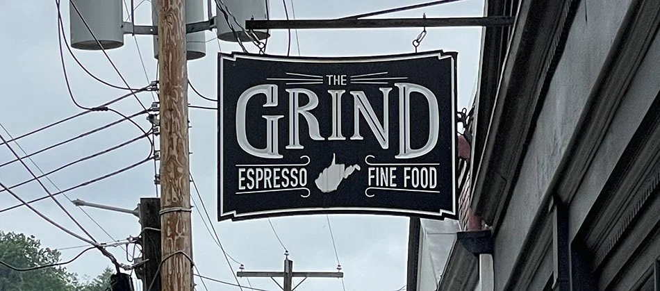This sign welcomes you to The Grind in Morgantown, WV