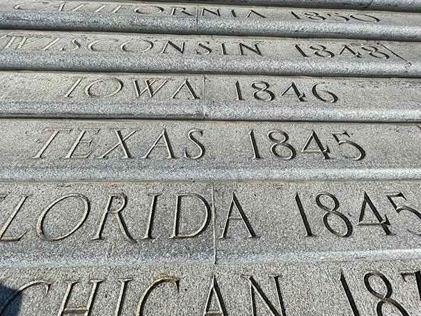 He is buried in the center of the Capitol Grounds under the monument to him. I had a peaceful walk around the Capitol Grounds before heading into the building. As you enter the capitol north of the Capitol Grounds, the Front Steps are engraved with the names of the U.S. states in order of admission to the Union.