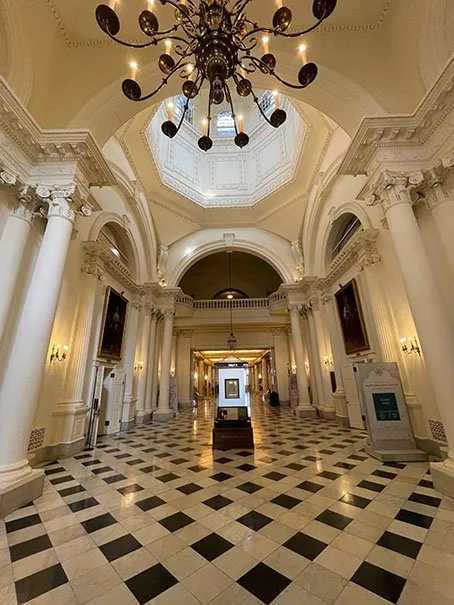 The dome, completed in 1797, is the largest wooden dome in the United States built without nails. Instead, it’s held together with wooden pegs and iron straps (apparently nails were too mainstream). Topped with a lightning rod designed by Benjamin Franklin, it remains one of the most distinctive features of the building.