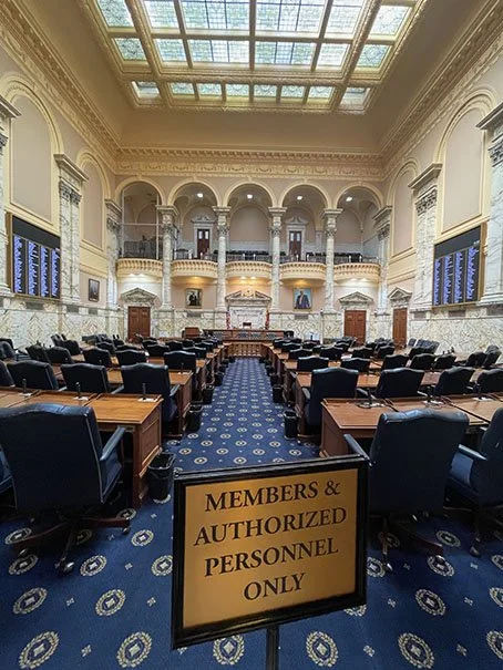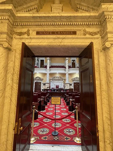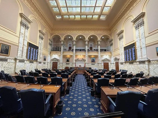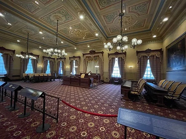 The Maryland State House is the oldest state capitol building in continuous legislative use. The Old Senate and House of Delegates chambers are preserved under the same roof as the current chambers in the new wing.