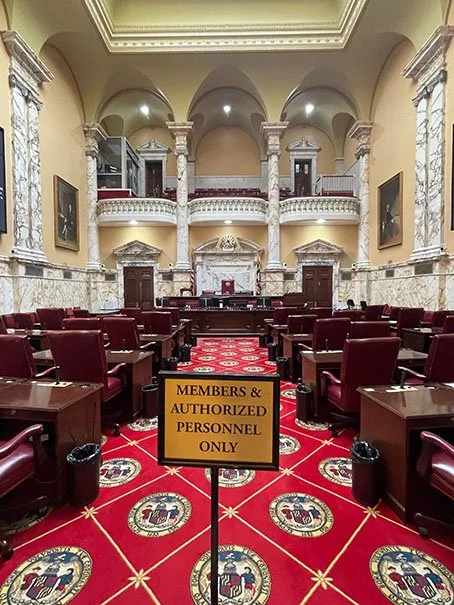 The Maryland State House is home to the Maryland Governor and Maryland General Assembly, which includes the Senate and House of Delegates.