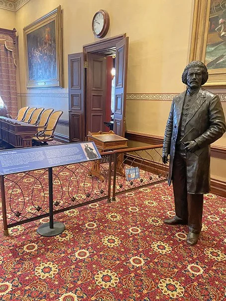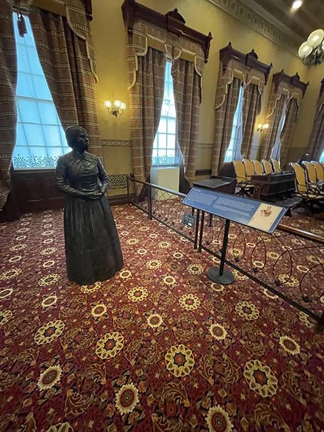 In the Old House Chamber are bronze statues of Maryland-born abolitionists Tubman and Douglass, both dedicated to freeing enslaved people.