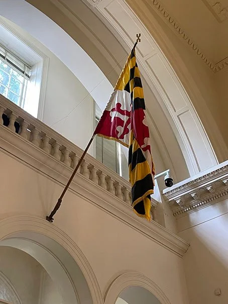 A unique feature of the Maryland State House is the life-size bronze statues of historical figures, including George Washington, Harriet Tubman, and Frederick Douglass, placed in high-traffic areas of the old chambers.