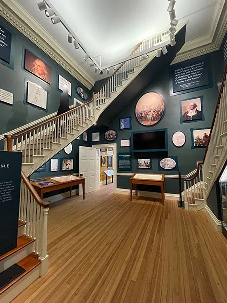 The Stairwell Room, named for the stairwells leading to the aforementioned Old Senate Gallery and the dome, has exhibits dedicated to George Washington, Revolutionary Annapolis, the Treaty of Paris and Thomas Jefferson in Annapolis, and the 18th-century State House.