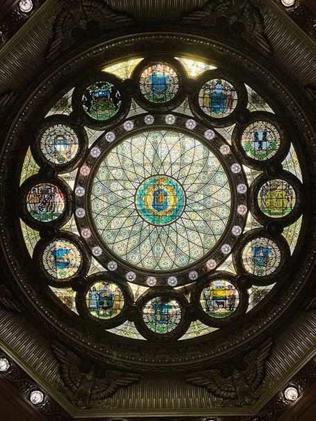 Enter the State House through the gate with the General Joseph Hooker statue at the crosswalk at Park and Beacon Streets. The front entrance is only used for ceremonial visits. Its golden dome was originally made of wood, later overlaid with copper by Paul Revere’s company, and eventually gilded in gold leaf. It shines over Boston Common like a beacon—which feels appropriate, given its address on Beacon Street.