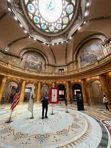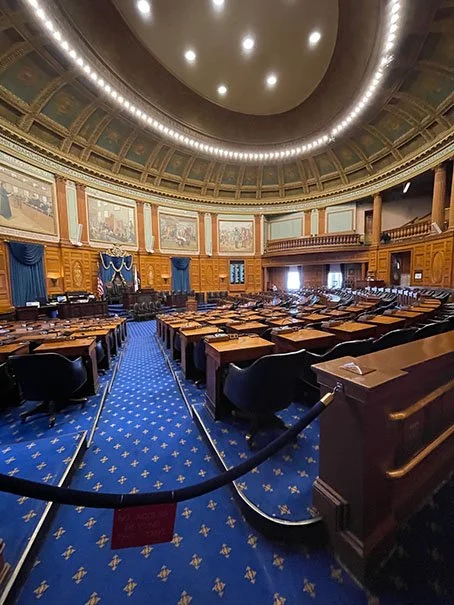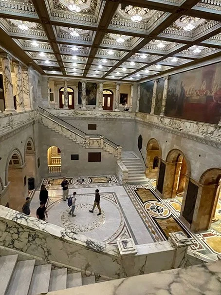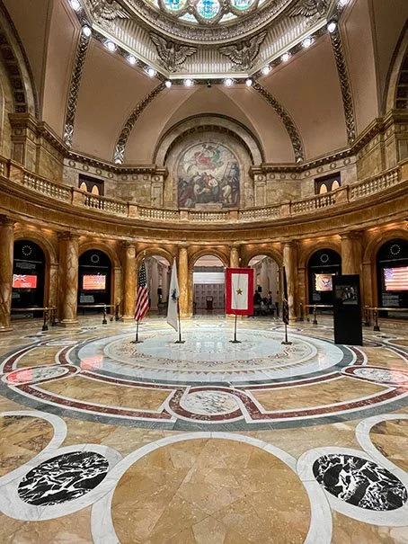 The interior is highly ornate, with marble corridors. The Massachusetts State House contains statues of historically significant Bay Staters and murals depicting Massachusetts’ rich history.