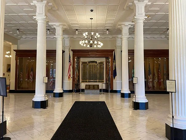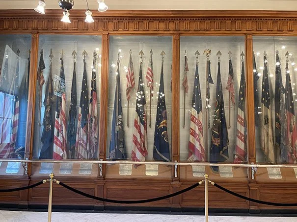 When you enter the building, you are in the Hall of Flags, which features New Hampshire’s 107 battle flags for wars throughout American history.