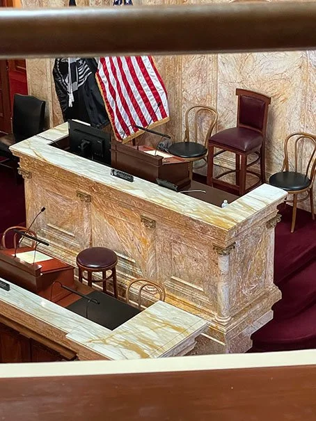 Photo opportunities were more limited with the guided tour—or maybe because I was a bit testy and less engaged. The tour guide was excellent and engaging. He made sure we stopped at my usual places for capitol visits, so I’m grateful for that. This includes the New Jersey Governor’s office, the dome interior, and both chambers of the New Jersey Legislature, which consists of the Senate and General Assembly.
