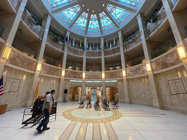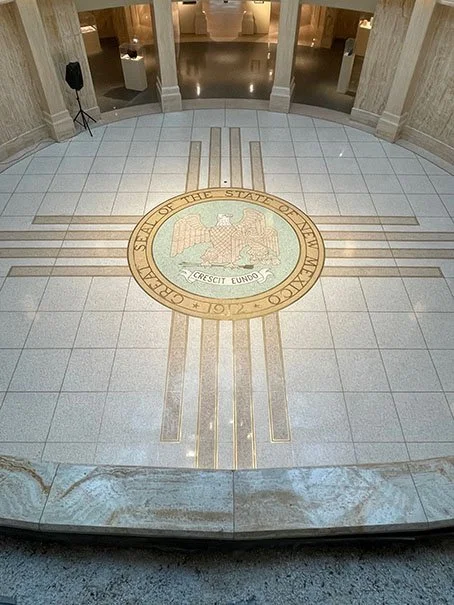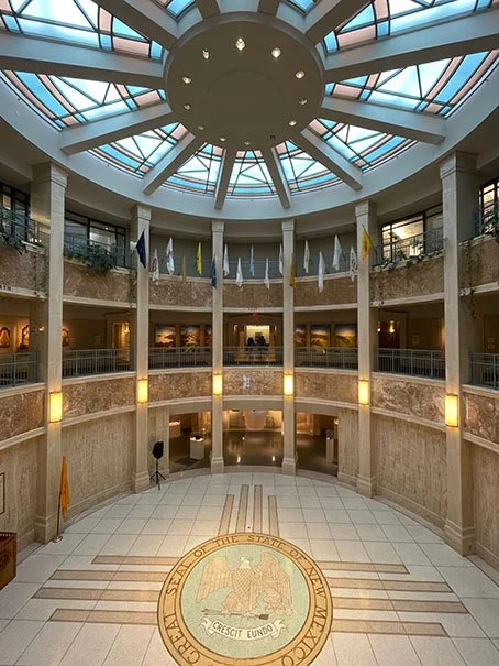 The Roundhouse is in downtown Santa Fe (“Holy Faith” in Spanish), the oldest and highest capitol in the nation.