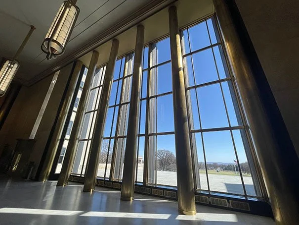 Memorial Hall, which honors those lost in World War I, features a 40-foot ceiling with lights shaped like wheat and a massive window that is my favorite feature of the building thanks to an abundance of natural light.