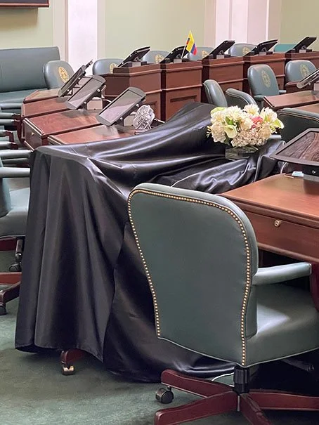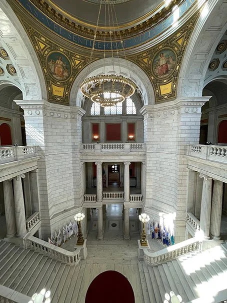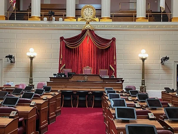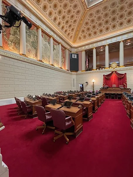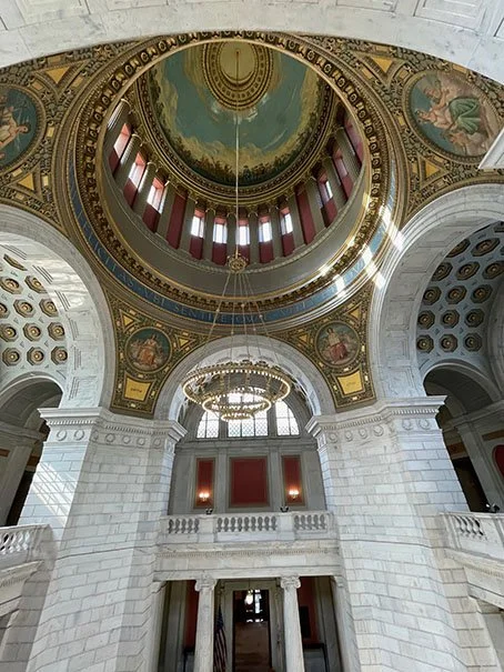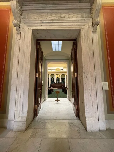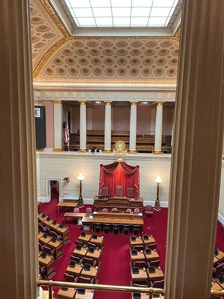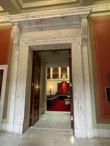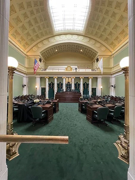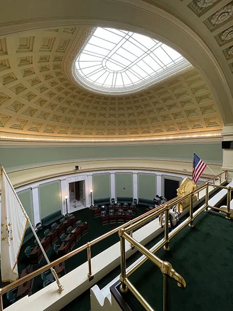 The Rhode Island State House is home to the Rhode Island Governor and Rhode Island General Assembly, consisting of the Senate and House of Representatives. The day of our visit, one Senate seat was draped in black; Senate Whip and longtime Sen. Maryellen Goodwin died of colon cancer a couple of months earlier.