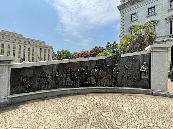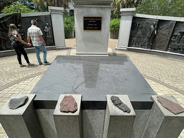 The African American History Monument captures 300 years of black history in South Carolina, spanning slavery, freedom, and civil rights. At the base of the central obelisk are four rubbing stones from African regions where enslaved people were captured. The African American History Monument (PDF) brochure is a downloadable source of additional information.