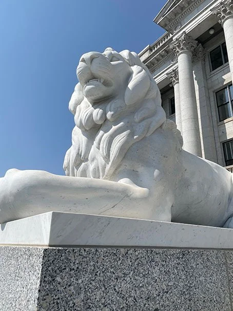 Some of my favorite pictures of this capitol were of the Capitol Lions, which majestically guard the East and West Entrances. An exhibit on the fourth floor provides more information about the lions. They were given the names of honorable virtues and depict different stages of life: